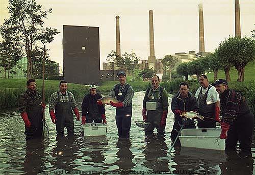 Die Befischung der Autostadt in Wolfsburg erfolgte in zwei aufeinander folgenden Jahren jeweils Mitte Juni ab ca. 3:00 Uhr morgens, denn während der Besuchszeiten sind solche Aktionen nicht erwünscht.