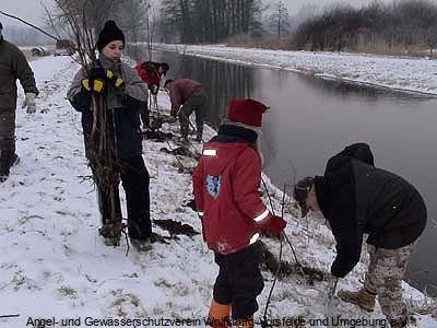 Die ersten Erlen wurden in Absprache mit der unteren Wasserbehörde der Stadt Wolfsburg und der Feldmarksinteressentschaft an der Aller im Vorsfelder Drömling im März 2005 von AGV-Mitglieder und deren Kindern (!) bei ziemlich widrigem Wetter gepflanzt.